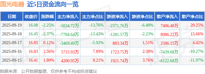 9月19日的资金流向数据方面,主力资金净流出5034.72万元,占总成交额13.76%,游资资金净流出2371.76万元,占总成交额6.48%,散户资金净流入7406.48万元,占总成交额20.25%。