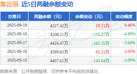 证券之星消息,9月19日,富吉瑞(688272)融资买入194.89万元,融资偿还175.68万元,融资净买入19.21万元,融资余额4227.42万元。