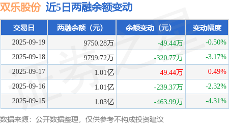证券之星消息,9月19日,双乐股份(301036)融资买入999.67万元,融资偿还1049.11万元,融资净卖出49.44万元,融资余额9750.28万元。