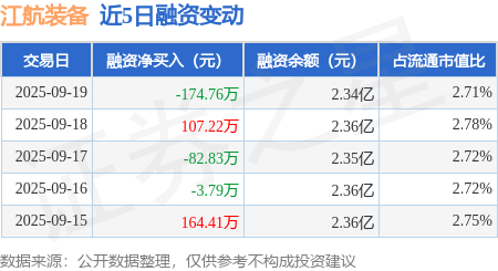 证券之星消息,9月19日,江航装备(688586)融资买入995.23万元,融资偿还1170.0万元,融资净卖出174.76万元,融资余额2.34亿元。