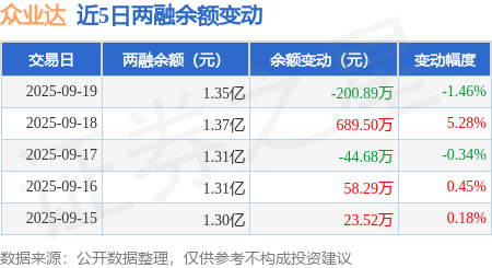 证券之星消息,9月19日,众业达(002441)融资买入631.0万元,融资偿还831.89万元,融资净卖出200.89万元,融资余额1.35亿元。