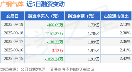 证券之星消息,9月19日,广钢气体(688548)融资买入2745.63万元,融资偿还3212.32万元,融资净卖出466.69万元,融资余额1.73亿元。