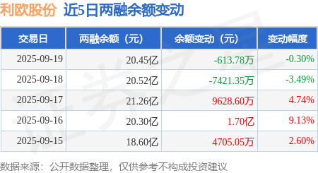 证券之星消息,9月19日,利欧股份(002131)融资买入5.2亿元,融资偿还5.25亿元,融资净卖出539.15万元,融资余额20.43亿元。