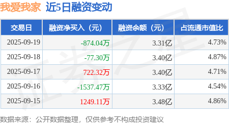 证券之星消息,9月19日,我爱我家(000560)融资买入5562.55万元,融资偿还6436.59万元,融资净卖出874.04万元,融资余额3.31亿元。