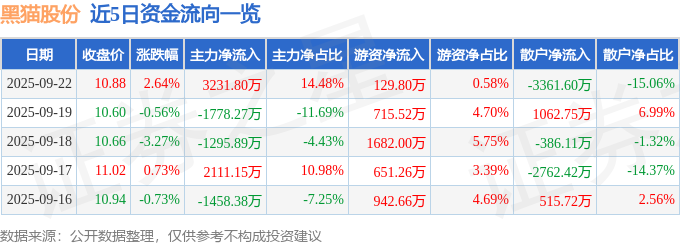 9月22日的资金流向数据方面,主力资金净流入3231.8万元,占总成交额14.48%,游资资金净流入129.8万元,占总成交额0.58%,散户资金净流出3361.6万元,占总成交额15.06%。