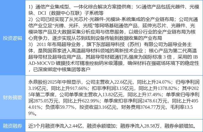 该股为超导概念,5G,光通信概念热股,当日超导概念概念上涨1.9%,5G概念上涨1.59%,光通信概念上涨1.55%。