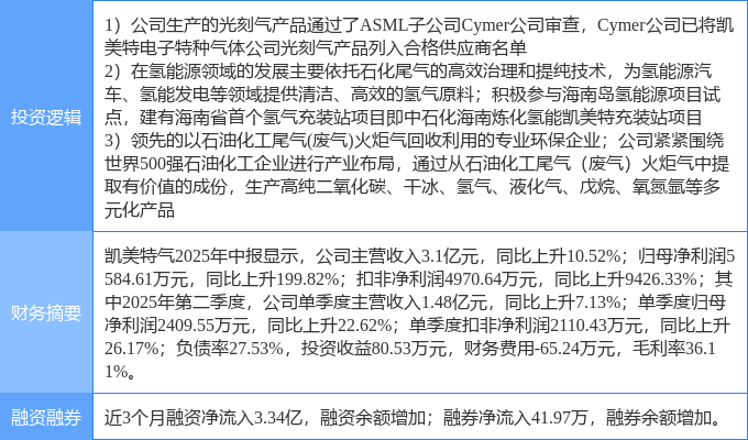 该股为光刻机(胶),氢能源/燃料电池,大气治理概念热股,当日光刻机(胶)概念上涨1.38%,氢能源/燃料电池概念上涨1.08%,大气治理概念上涨0.34%。
