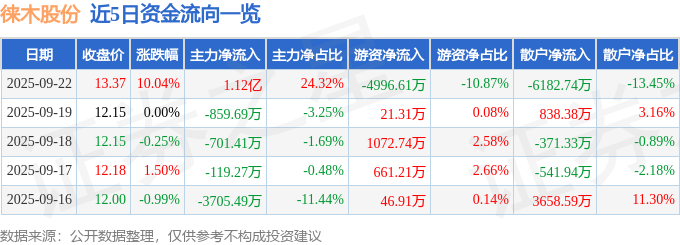 9月22日的资金流向数据方面,主力资金净流入1.12亿元,占总成交额24.32%,游资资金净流出4996.61万元,占总成交额10.87%,散户资金净流出6182.74万元,占总成交额13.45%。