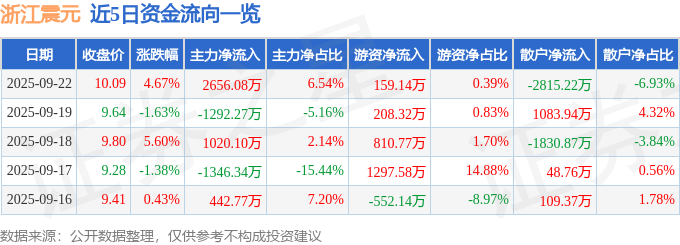 9月22日的资金流向数据方面,主力资金净流入2656.08万元,占总成交额6.54%,游资资金净流入159.14万元,占总成交额0.39%,散户资金净流出2815.22万元,占总成交额6.93%。