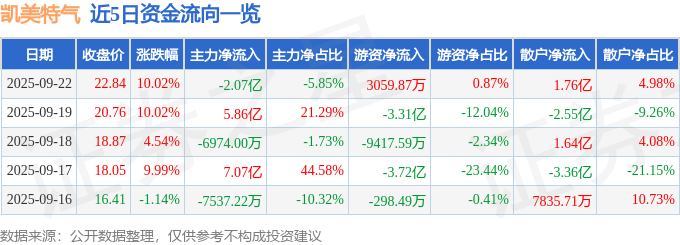 9月22日的资金流向数据方面,主力资金净流出2.07亿元,占总成交额5.85%,游资资金净流入3059.87万元,占总成交额0.87%,散户资金净流入1.76亿元,占总成交额4.98%。