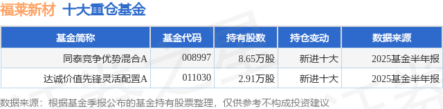 根据2025基金半年报公募基金重仓股数据,重仓该股的公募基金共2家,其中持有数量最多的公募基金为同泰基金的同泰竞争优势混合A。同泰竞争优势混合A目前规模为0.14亿元,最新净值1.2848(9月19日),较上一交易日下跌3.57%,近一年上涨5.66%。该公募基金现任基金经理为王秀。王秀在任的基金产品包括:同泰开泰混合A,管理时间为2024年1月30日至今,期间收益率为59.24%;同泰慧盈混合A,管理时间为2024年1月30日至今,期间收益率为22.81%;同泰金融精选股票A,管理时间为2024年1月30日至今,期间收益率为55.41%;同泰产业升级混合A,管理时间为2024年6月24日至今,期间收益率为184.62%。