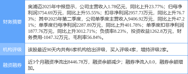今日奥浦迈(688293)涨9.90%,收盘报58.7元。