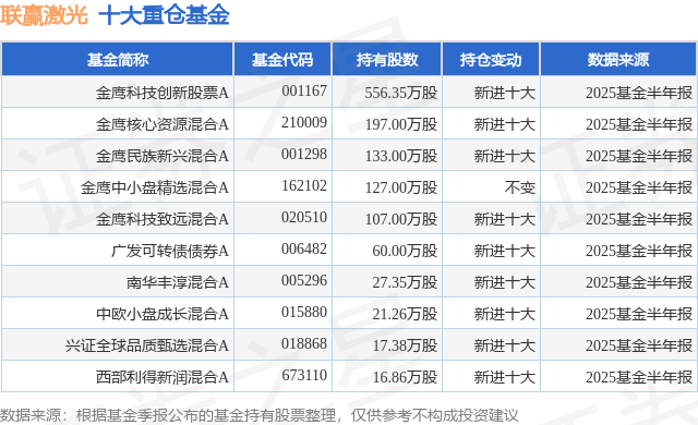 根据2025基金半年报公募基金重仓股数据,重仓该股的公募基金共20家,其中持有数量最多的公募基金为金鹰基金的金鹰科技创新股票A。金鹰科技创新股票A目前规模为31.9亿元,最新净值1.9946(9月19日),较上一交易日下跌1.19%,近一年上涨101.62%。该公募基金现任基金经理为陈颖。陈颖在任的基金产品包括:金鹰核心资源混合A,管理时间为2019年1月26日至今,期间收益率为263.43%;金鹰红利价值混合A,管理时间为2020年4月28日至今,期间收益率为179.13%;金鹰科技致远混合A,管理时间为2024年3月19日至今,期间收益率为93.03%。
