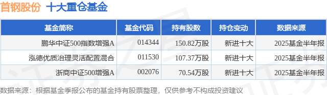 重仓首钢股份的公募基金请见下表: