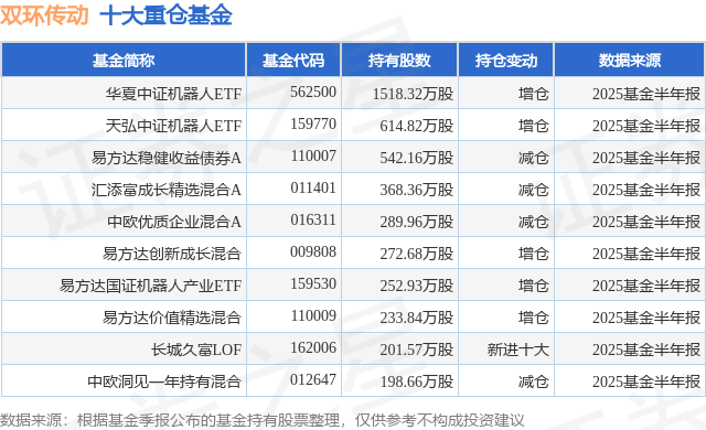 重仓双环传动的前十大公募基金请见下表: