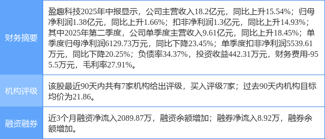 今日盈趣科技(002925)涨10.01%,收盘报19.56元。