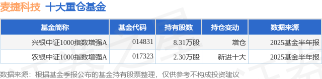 根据2025基金半年报公募基金重仓股数据,重仓该股的公募基金共2家,其中持有数量最多的公募基金为兴银基金管理的兴银中证1000指数增强A。兴银中证1000指数增强A目前规模为1.07亿元,最新净值1.1469(9月19日),较上一交易日下跌0.57%,近一年上涨71.0%。该公募基金现任基金经理为林学晨。林学晨在任的基金产品包括:兴银中证科创创业50指数A,管理时间为2024年3月5日至今,期间收益率为76.71%;兴银中证港股通科技ETF,管理时间为2024年3月5日至今,期间收益率为106.47%;兴银鼎新灵活配置A,管理时间为2024年8月2日至今,期间收益率为-0.04%。