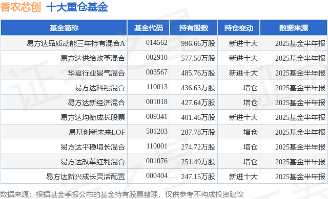 根据2025基金半年报公募基金重仓股数据,重仓该股的公募基金共19家,其中持有数量最多的公募基金为易方达基金的易方达品质动能三年持有混合A。易方达品质动能三年持有混合A目前规模为78.37亿元,最新净值1.3061(9月19日),较上一交易日上涨0.21%,近一年上涨86.35%。该公募基金现任基金经理为陈皓。陈皓在任的基金产品包括:易方达平稳增长混合,管理时间为2012年9月28日至今,期间收益率为461.05%;易方达科翔混合,管理时间为2014年5月10日至今,期间收益率为646.4%;易方达新经济混合,管理时间为2015年2月12日至今,期间收益率为401.5%;易方达均衡成长股票,管理时间为2020年5月22日至今,期间收益率为42.82%。