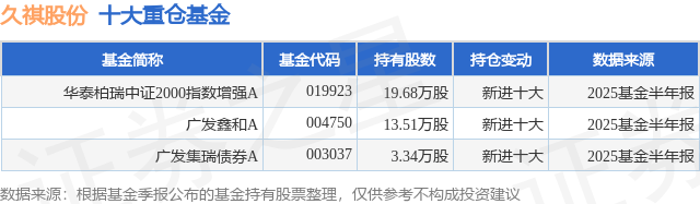 重仓久祺股份的公募基金请见下表: