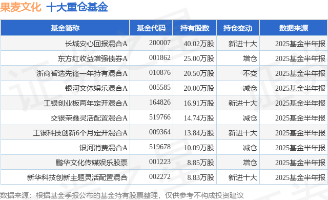 根据2025基金半年报公募基金重仓股数据,重仓该股的公募基金共19家,其中持有数量最多的公募基金为长城基金的长城安心回报混合A。长城安心回报混合A目前规模为7.92亿元,最新净值1.4769(9月19日),较上一交易日下跌0.24%,近一年上涨43.42%。该公募基金现任基金经理为韩林 唐然。韩林在任的基金产品包括:长城价值成长六个月持有期混合A,管理时间为2021年11月4日至今,期间收益率为-25.45%;长城数字经济混合A,管理时间为2023年1月19日至今,期间收益率为35.01%;长城创新成长混合A,管理时间为2023年5月30日至今,期间收益率为34.06%。唐然在任的基金产品包括:长城优选回报六个月持有混合A,管理时间为2022年9月16日至今,期间收益率为5.84%;