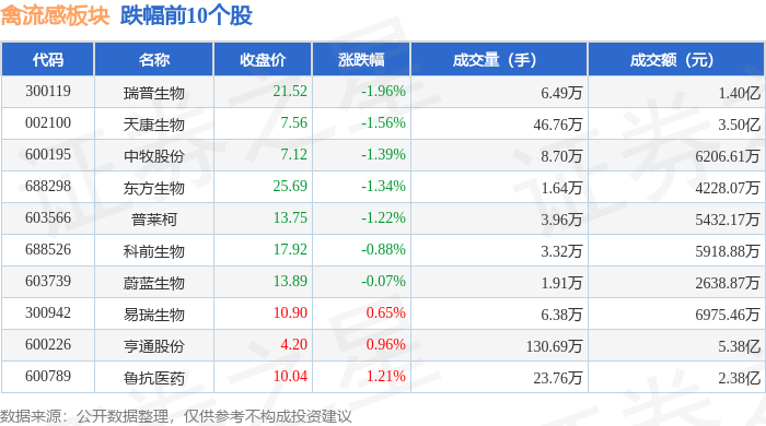 从资金流向上来看,当日禽流感板块主力资金净流出1815.35万元,游资资金净流入1042.29万元,散户资金净流入773.06万元。禽流感板块个股资金流向见下表: