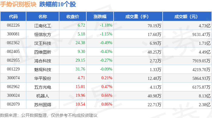 从资金流向上来看,当日手势识别板块主力资金净流出1.89亿元,游资资金净流入4976.71万元,散户资金净流入1.4亿元。手势识别板块个股资金流向见下表: