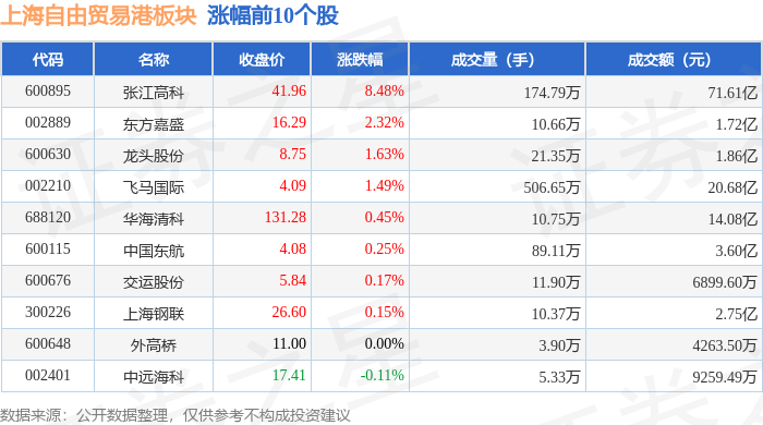 从资金流向上来看,当日上海自由贸易港板块主力资金净流入3510.53万元,游资资金净流出1.92亿元,散户资金净流入1.57亿元。上海自由贸易港板块个股资金流向见下表: