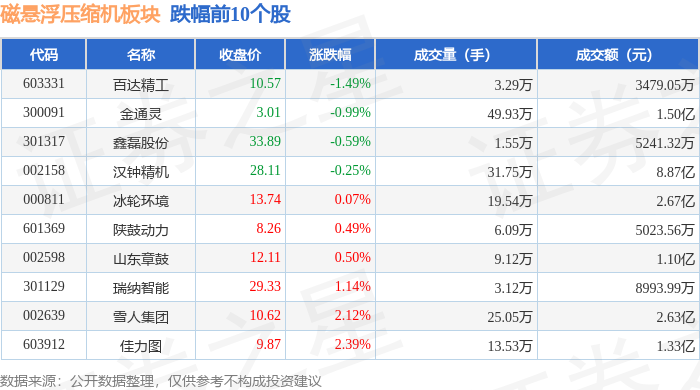从资金流向上来看,当日磁悬浮压缩机板块主力资金净流出3.22亿元,游资资金净流入8005.6万元,散户资金净流入2.42亿元。磁悬浮压缩机板块个股资金流向见下表: