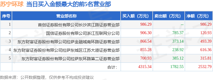 证券之星消息,沪深交易所2025年9月22日公布的交易公开信息显示,苏宁环球(000718)因日跌幅偏离值达到7%的前5只证券登上龙虎榜。此次是近5个交易日内第2次上榜。
