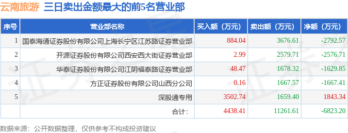证券之星消息,沪深交易所2025年9月22日公布的交易公开信息显示,云南旅游(002059)因连续三个交易日内,涨幅偏离值累计达到20%的证券登上龙虎榜。此次是近5个交易日内第2次上榜。