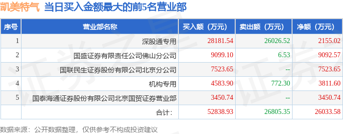 从龙虎榜公布的当日买卖数据来看,机构合计净买入3811.6万元,北向资金合计净买入2155.02万元。佛山系、毛老板、一瞬流光等知名游资榜上有名。(知名游资佛山系一般指国盛证券有限责任公司佛山分公司席位、知名游资毛老板一般指国泰海通证券股份有限公司北京国贸证券营业部席位、知名游资一瞬流光一般指中泰证券股份有限公司湖北分公司席位,根据市场资料整理,仅供参考)
