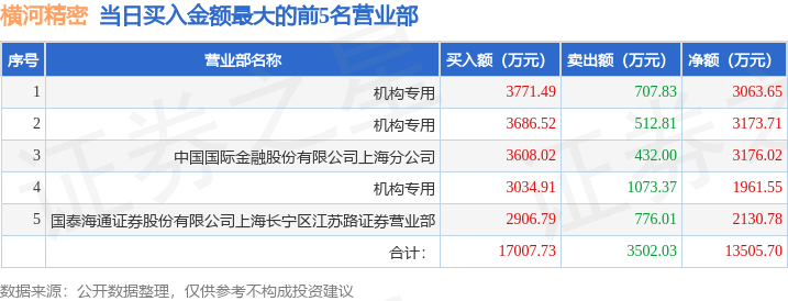 从龙虎榜公布的当日买卖数据来看,机构合计净买入9529.29万元。章盟主等知名游资榜上有名。(知名游资章盟主一般指国泰海通证券股份有限公司上海长宁区江苏路证券营业部席位,根据市场资料整理,仅供参考)