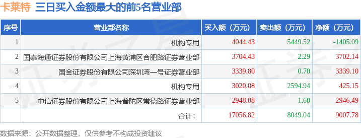 证券小知识:龙虎榜是交易所披露的竞价交易公开信息,现身龙虎榜的个股都是当日最为活跃的个股,是投资者日常重点关注的数据。交易所公布当日买入金额和卖出金额前五名的席位,其中一些席位代表特殊意义,如机构专用席位是指基金专用席位、券商自营专用席位、社保专用席位、券商理财专用席位、保险机构专用席位、保险机构租用席位、QFII专用席位等机构投资者买卖证券的专用通道和席位。深股通专用、沪股通专用为北向资金的交易席位。从龙虎榜数据可以发现和研究机构、游资和散户的资金动向。一些营业部席位经常上榜,市场知名度较高,投资者整理代表散户、游资、量化等不同资金的营业部席位。