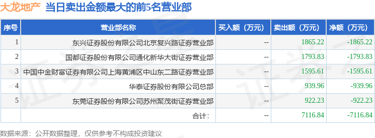 证券之星消息,沪深交易所2025年9月22日公布的交易公开信息显示,大龙地产(600159)因有价格涨跌幅限制的日收盘价格跌幅偏离值达到7%的前五只证券登上龙虎榜。此次是近5个交易日内第3次上榜。