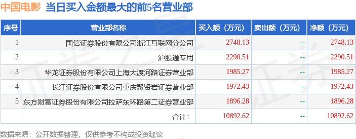 证券之星消息,沪深交易所2025年9月22日公布的交易公开信息显示,中国电影(600977)因有价格涨跌幅限制的日收盘价格跌幅偏离值达到7%的前五只证券登上龙虎榜。此次是近5个交易日内第3次上榜。