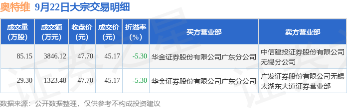 证券之星消息,9月22日奥特维发生大宗交易,交易数据如下: