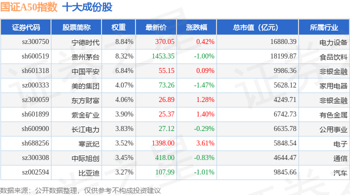 资金流向方面,国证A50(399310)指数成份股当日主力资金净流出合计16.55亿元,游资资金净流出合计12.59亿元,散户资金净流入合计29.13亿元。成份股资金流向详情见下表:
