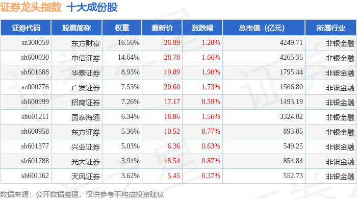 资金流向方面,证券龙头(399437)指数成份股当日主力资金净流入合计1.05亿元,游资资金净流入合计4679.87万元,散户资金净流出合计1.52亿元。成份股资金流向详情见下表: