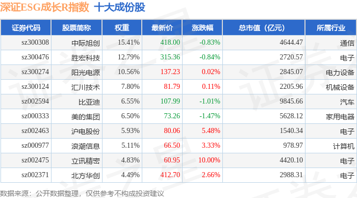 深证ESG成长R(470060)指数十大成份股详情如下: