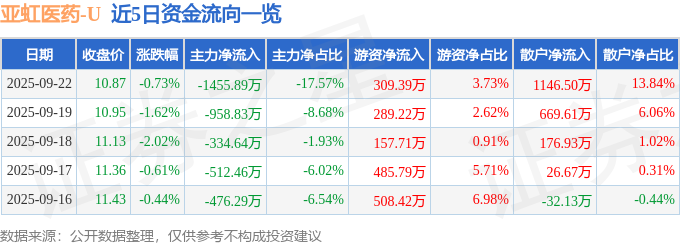 证券之星消息,截至2025年9月22日收盘,亚虹医药(688176)报收于10.87元,下跌0.73%,换手率1.75%,成交量7.61万手,成交额8285.01万元。