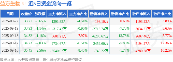 证券之星消息,截至2025年9月22日收盘,益方生物(688382)报收于33.71元,下跌0.65%,换手率2.17%,成交量9.07万手,成交额3.07亿元。