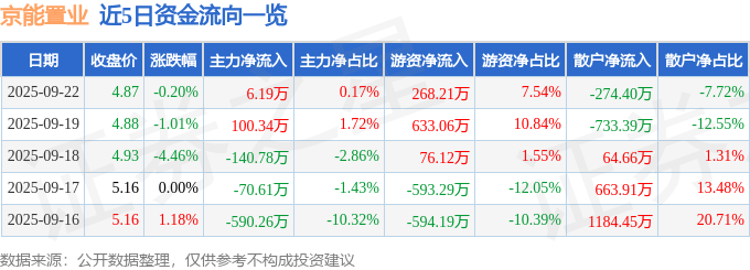 证券之星消息,截至2025年9月22日收盘,京能置业(600791)报收于4.87元,下跌0.2%,换手率1.63%,成交量7.37万手,成交额3556.51万元。