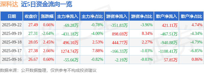9月22日的资金流向数据方面,主力资金净流出69.28万元,占总成交额0.78%,游资资金净流出351.83万元,占总成交额3.96%,散户资金净流入421.11万元,占总成交额4.74%。