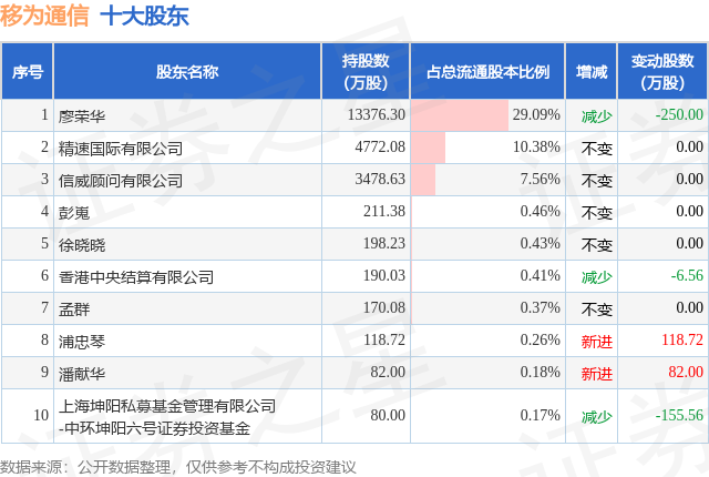 根据移为通信2025年中报公布的十大股东详情如下: