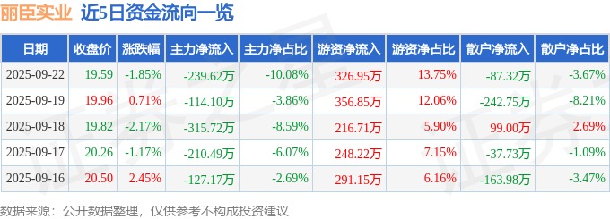 证券之星消息,截至2025年9月22日收盘,丽臣实业(001218)报收于19.59元,下跌1.85%,换手率1.3%,成交量1.21万手,成交额2377.5万元。
