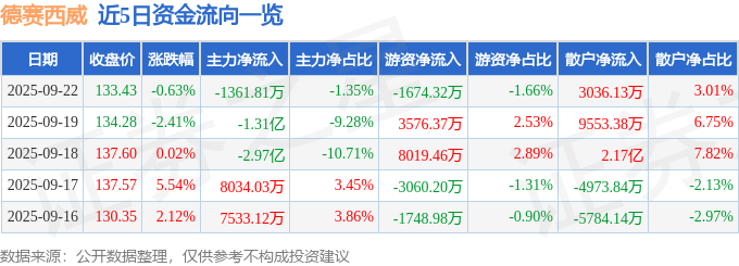证券之星消息,截至2025年9月22日收盘,德赛西威(002920)报收于133.43元,下跌0.63%,换手率1.36%,成交量7.53万手,成交额10.09亿元。