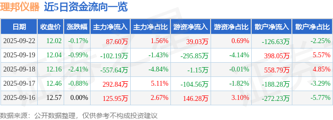 证券之星消息,截至2025年9月22日收盘,理邦仪器(300206)报收于12.02元,下跌0.17%,换手率1.38%,成交量4.68万手,成交额5633.74万元。