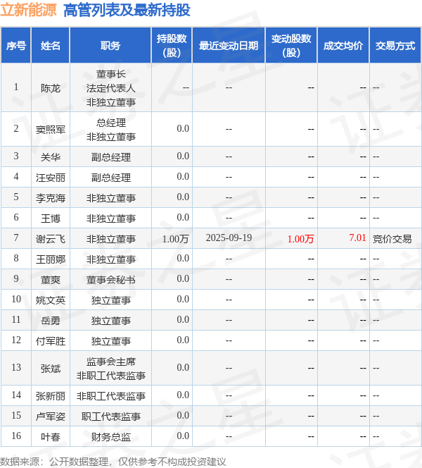 立新能源近半年内的董监高及核心技术人员增减持详情如下: