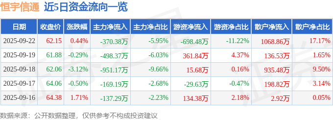 9月22日的资金流向数据方面,主力资金净流出370.38万元,占总成交额5.95%,游资资金净流出698.48万元,占总成交额11.22%,散户资金净流入1068.86万元,占总成交额17.17%。