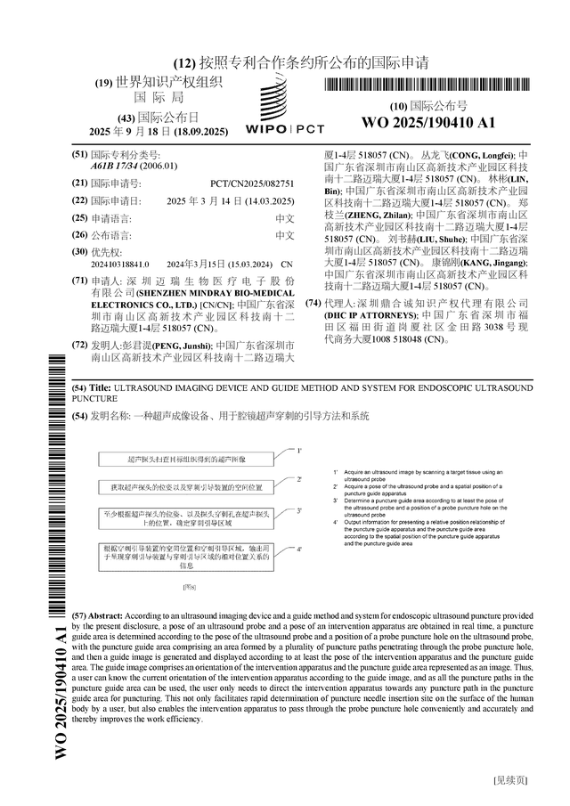 证券之星消息,根据企查查数据显示迈瑞医疗(300760)公布了一项国际专利申请,专利名为“一种超声成像设备、用于腔镜超声穿刺的引导方法和系统”,专利申请号为PCT/CN2025/082751,国际公布日为2025年9月18日。